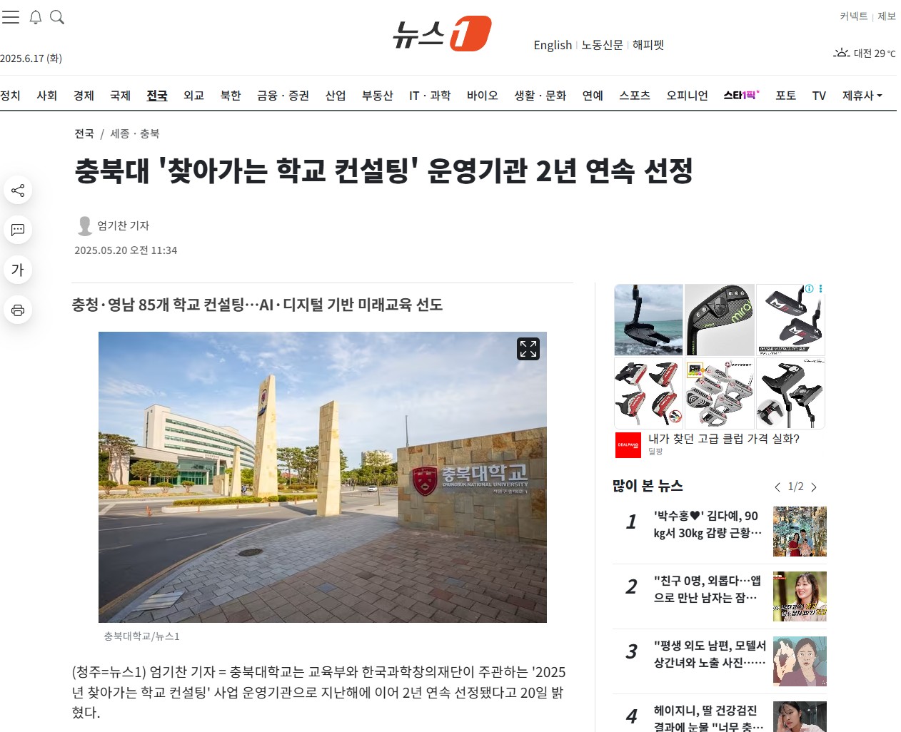 (청주=뉴스1) 엄기찬 기자 = 충북대학교는 교육부와 한국과학창의재단이 주관하는 '2025년 찾아가는 학교 컨설팅' 사업 운영기관으로 지난해에 이어 2년 연속 선정됐다고 20일 밝혔다.